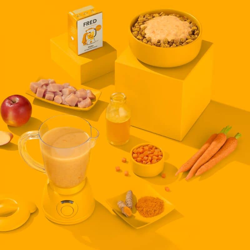 Tout commence en 2016 avec Jeannie – le labrador de Beate et Tobi, les deux fondateurs : très vite, elle développe des problèmes de peau et malgré croquettes de véto et traitement, seule l’alimentation maison entraine de véritables améliorations. C’est donc en cuisinant pour leur chien que née la marque Mr Fred… devenue Fred & Felia en 2022 suite au développement de recettes adaptées aux chats.