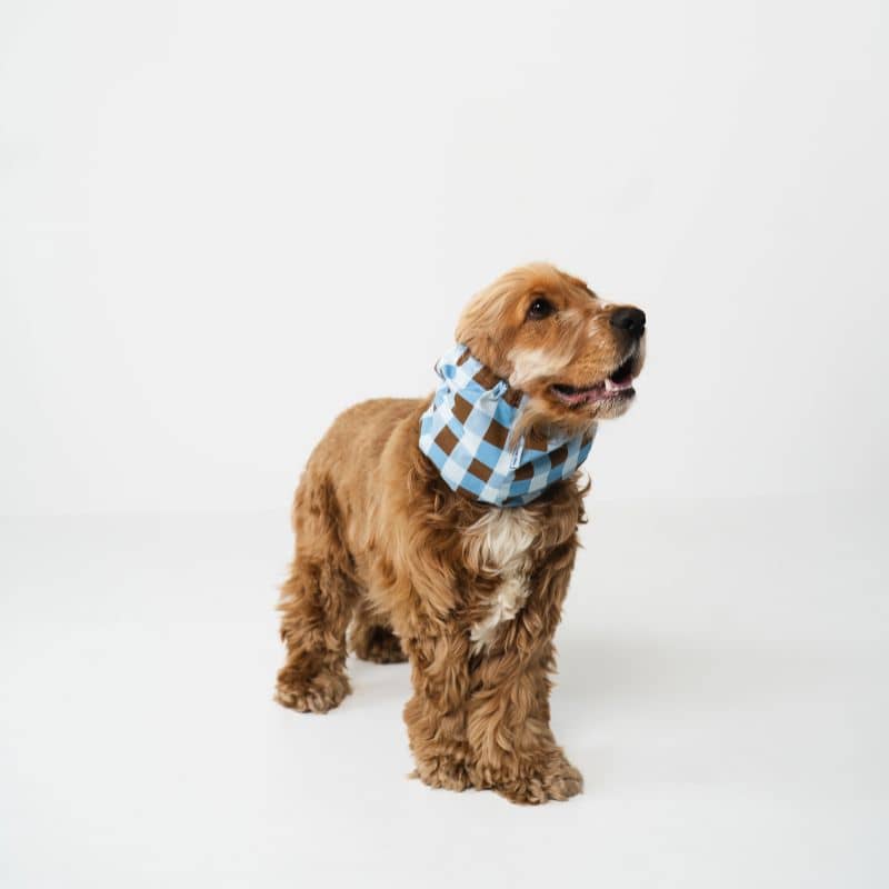 SNOOD POUR CHIEN EN COTON – CARREAUX MARRON & BLEU