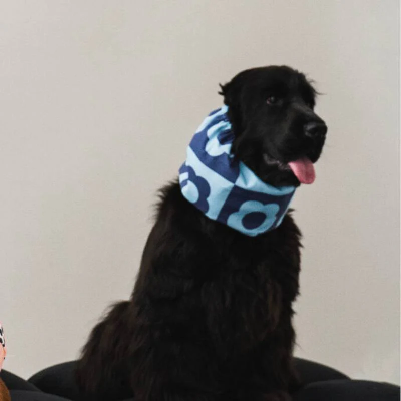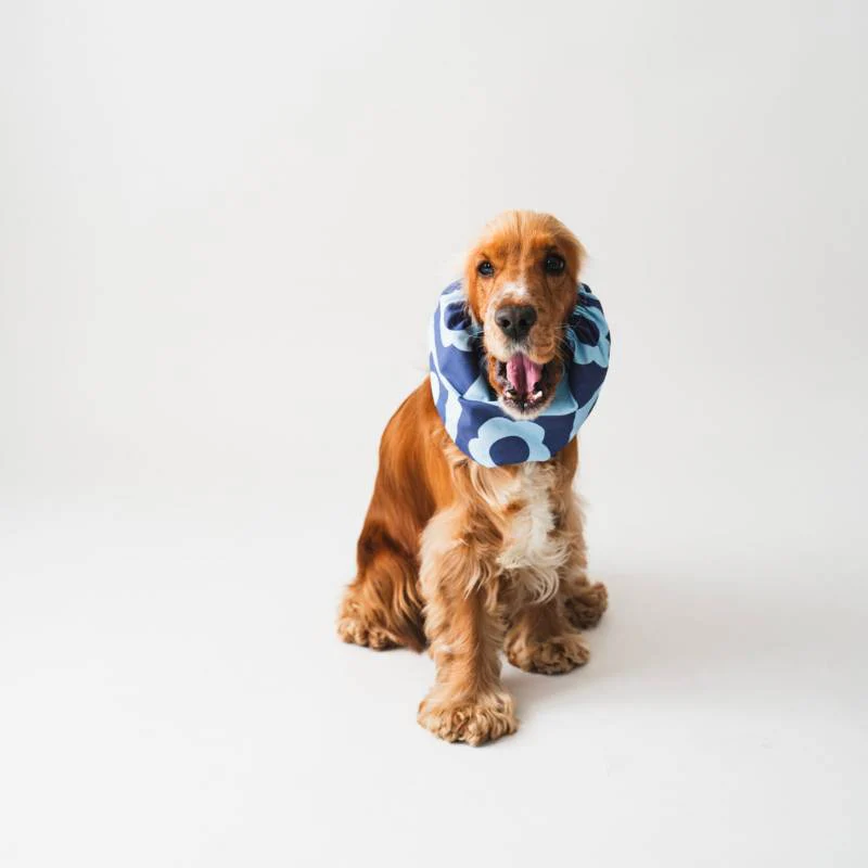 SNOOD POUR CHIEN EN COTON – FLEURS BLEUES RETRO