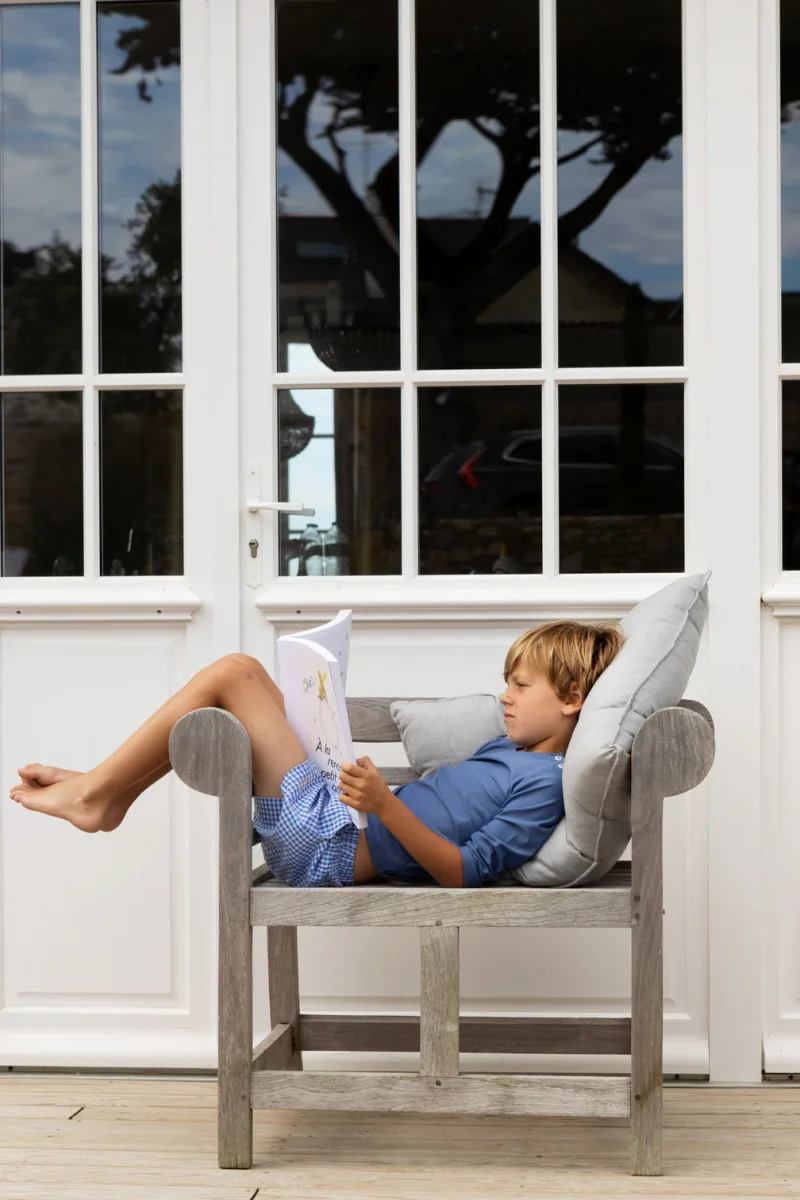 Profiter du soleil et se baigner avec les enfants est un tel bonheur ! Seulement voilà, les coups de soleil pendant l’enfance sont un risque majeur de développement des maladies de peau ou des mélanomes à l’âge adulte. La crème solaire est indispensable mais elle n’est pas un écran total tout comme les hauts en coton qui stoppent seulement 4% des UV. Seuls les tissus Anti-uv protègent efficacement des UVA et UVB. C’est pourquoi pour vous permettre de profiter sereinement de ces moments avec vos enfants et pour protéger au mieux leurs peaux sensibles du soleil, nous avons sélectionné chez INSTANT LOUVE les maillots Les Petits Dorés qui offrent une protection anti-uv UPF50+ bloquant jusqu’à 98% des UV. Nous avons priorisé les modèles avec manches : plus besoin de crème solaire à toute heure. Soucieuse de respecter l’environnement, cette marque française utilise des matières durables, recyclées sans aucun produit nocif ajouté. Les tissus sont européens, certifiés Oeko-tex et les maillots sont confectionnés avec éthique et respect par des femmes en reconversion professionnelle. Et comme vous le savez le style étant également un de nos critères de choix, nous avons été séduits par l’élégance de leurs designs et leurs coupes intemporelles.