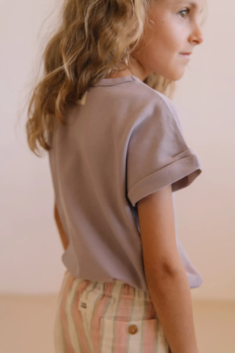 T-shirt en jersey de coton pima biologique.Ses manches à petits revers drapés et son encolure travaillée sont sa signature.