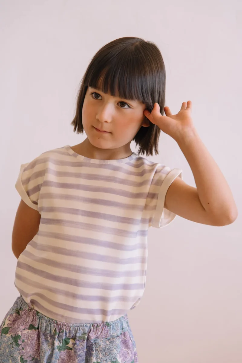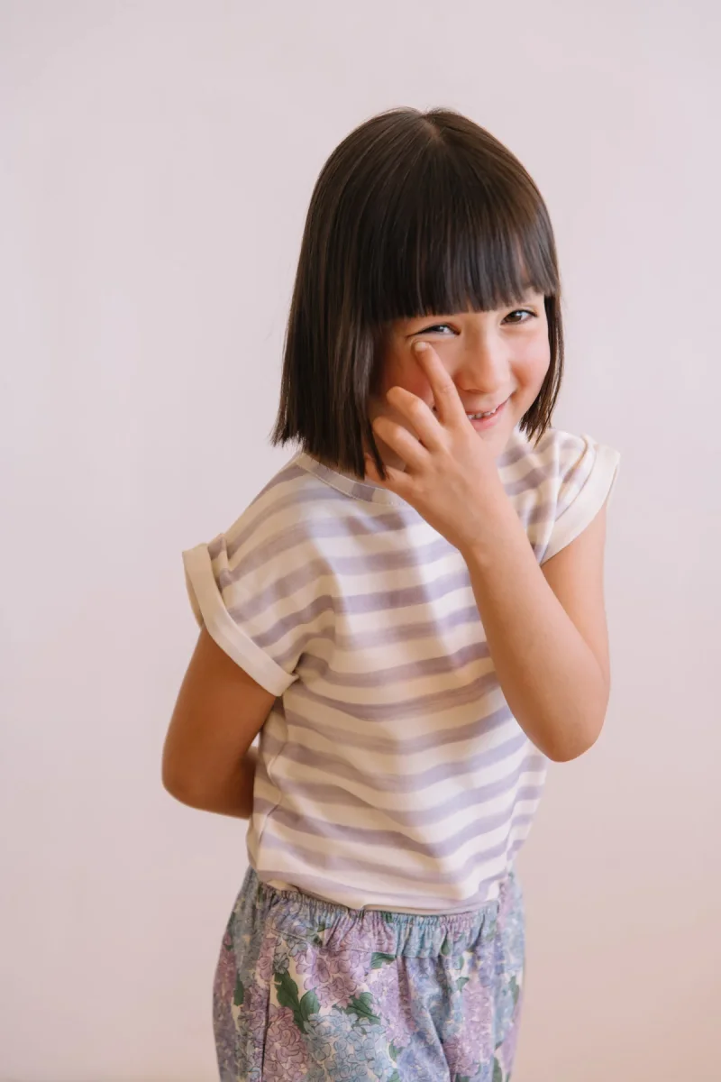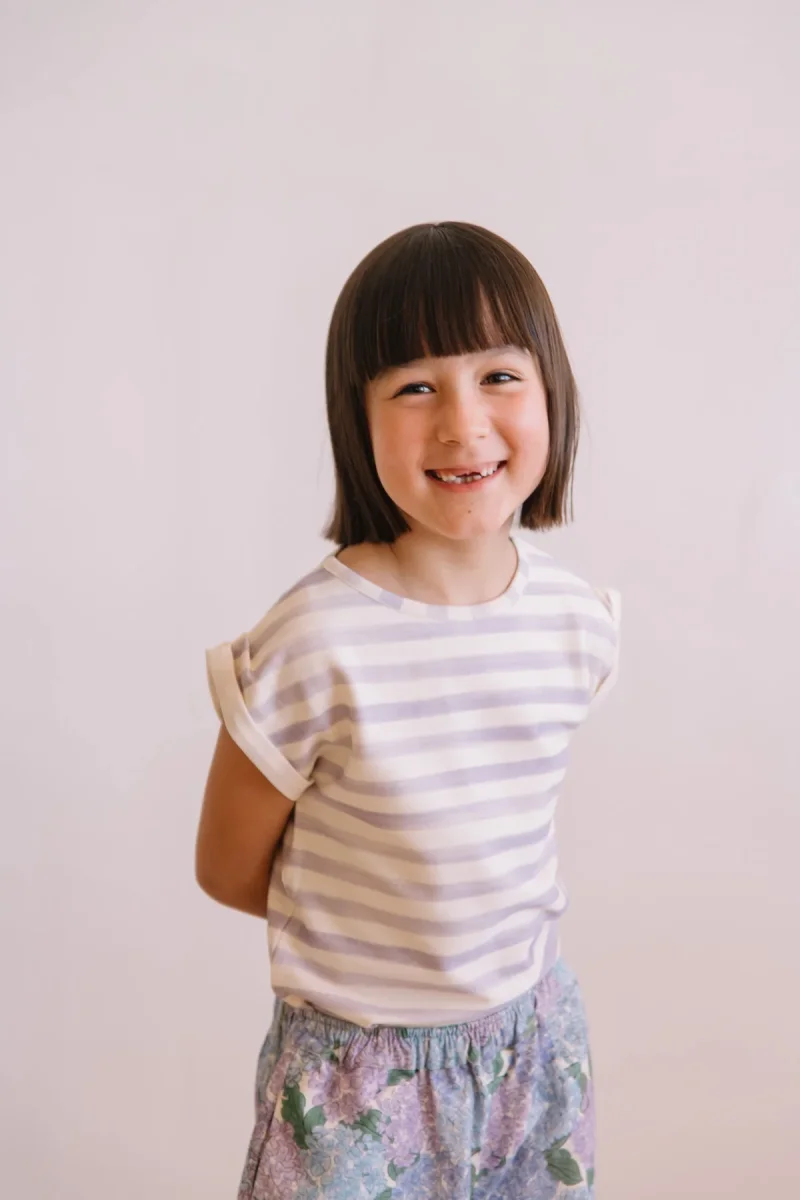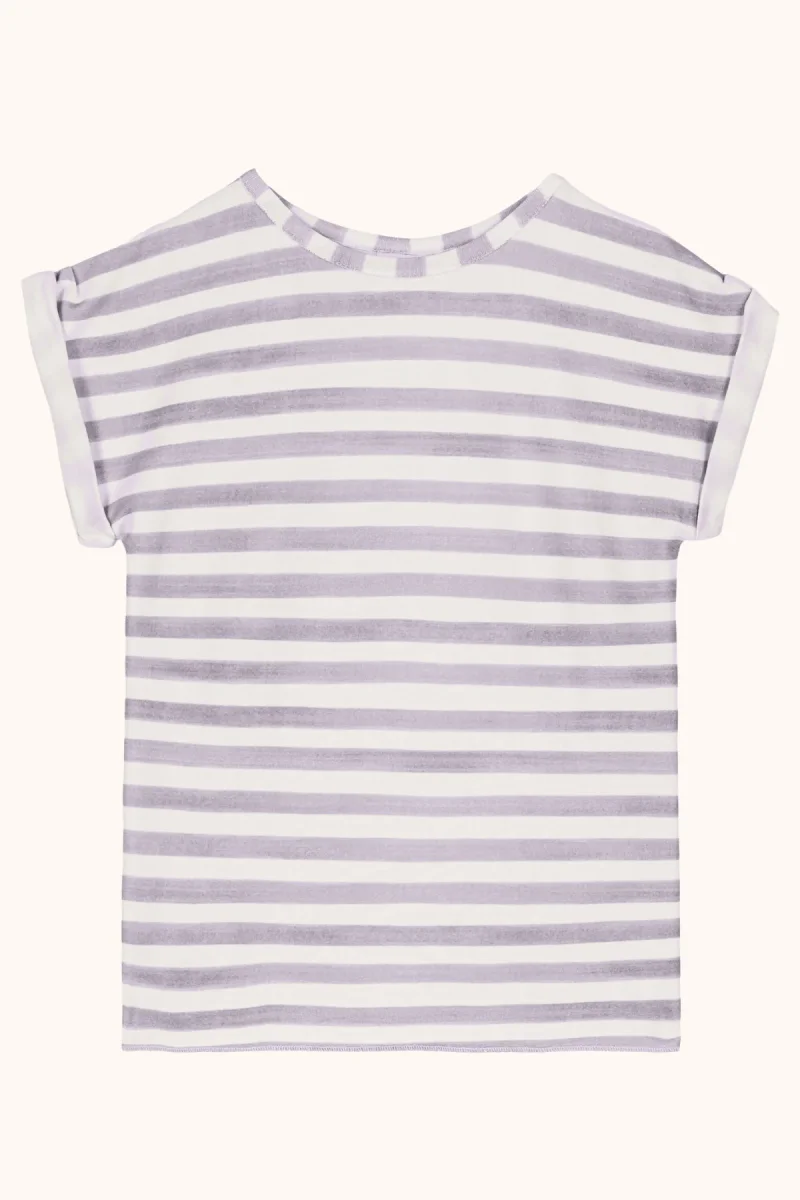T-shirt en jersey de coton pima biologique. Ses manches à petits revers drapés et son encolure travaillée sont sa signature.