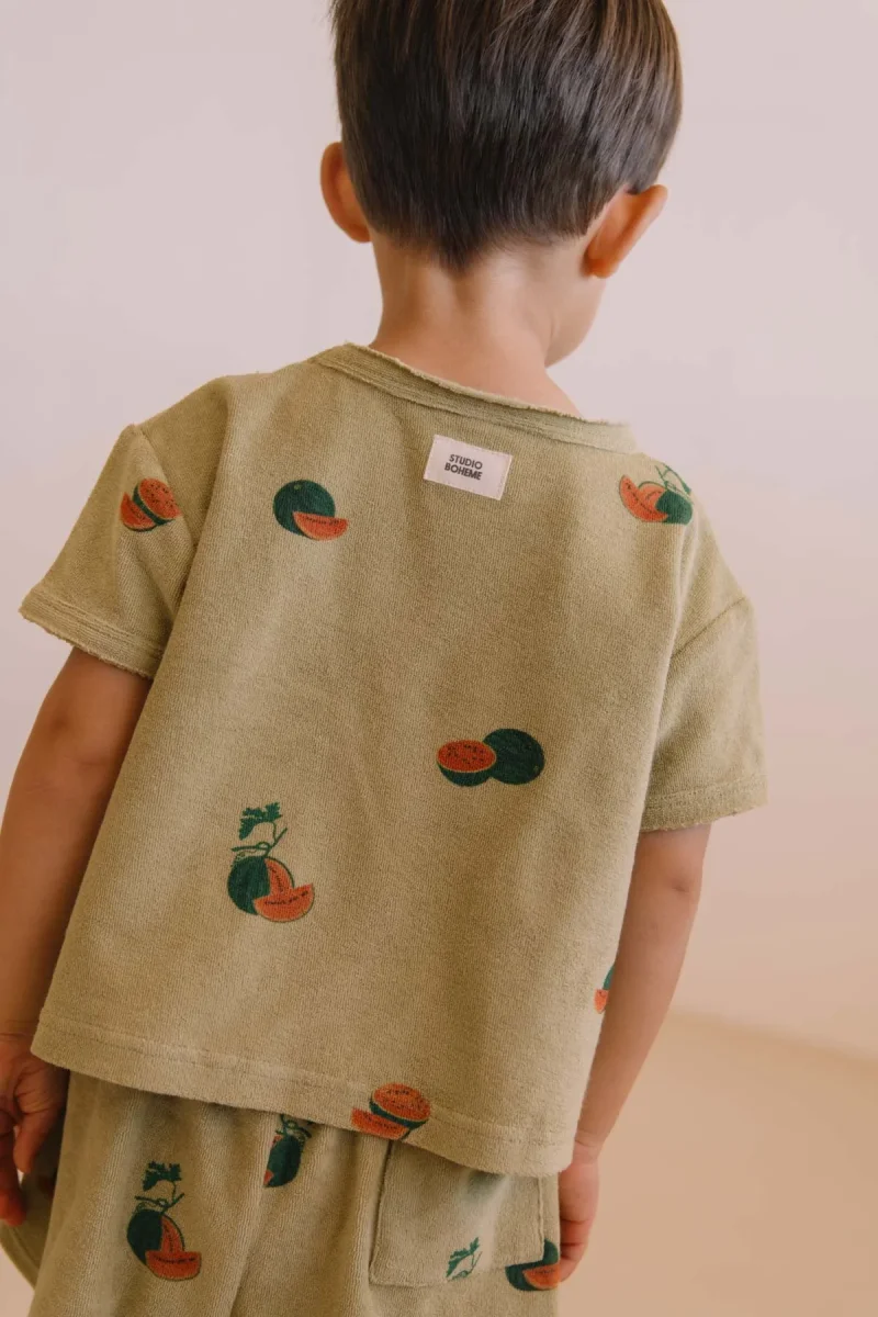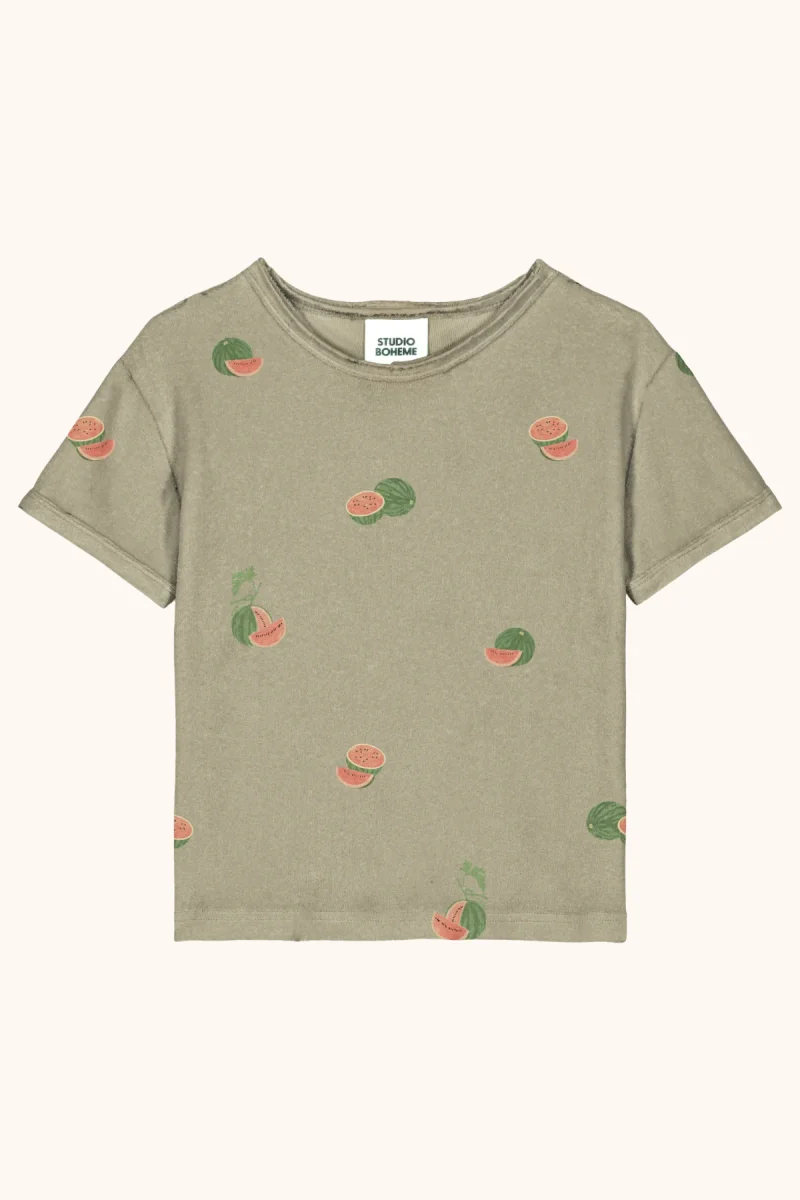 Etiquette décorative Studio Bohème au dos du t-shirt.