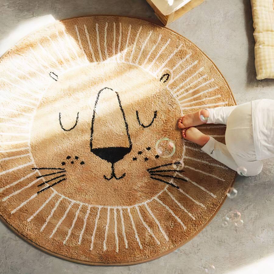 Tapis de jeu pour bébé imprimé en dessin de lion 100cm
