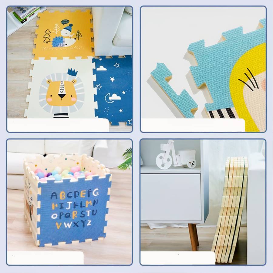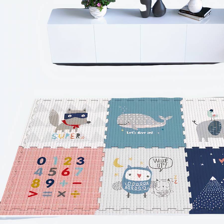 Vous cherchez un endroit doux et confortable pour que votre petit joue ? Ce tapis de jeu en 6 pièces de puzzle est parfait pour ramper, s’entrainer, la marche à quatre pattes et l’exploration. Il est également idéal pour les bébés plus âgés qui commencent à se lever et à marcher. La mousse épaisse accueille votre bébé et fournit une surface sûre et amortie pour jouer. Les couleurs vives et les motifs amusants sont sûrs de garder votre petit engagé. Le meilleur de tous, notre tapis est facile à nettoyer.