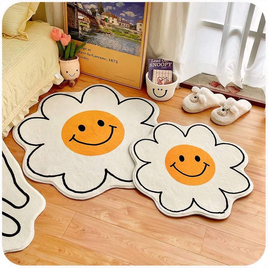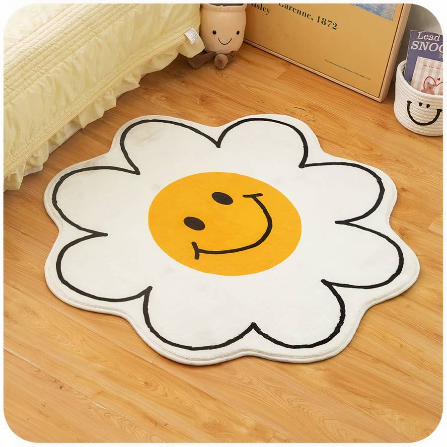 Le tapis de sol doux rond en forme de fleur qui sourit est un accessoire décoratif parfait pour ajouter une touche de gaieté à votre intérieur. Avec sa forme ronde et sa conception en forme de fleur, ce tapis apporte une ambiance joyeuse et ludique à n’importe quelle pièce.