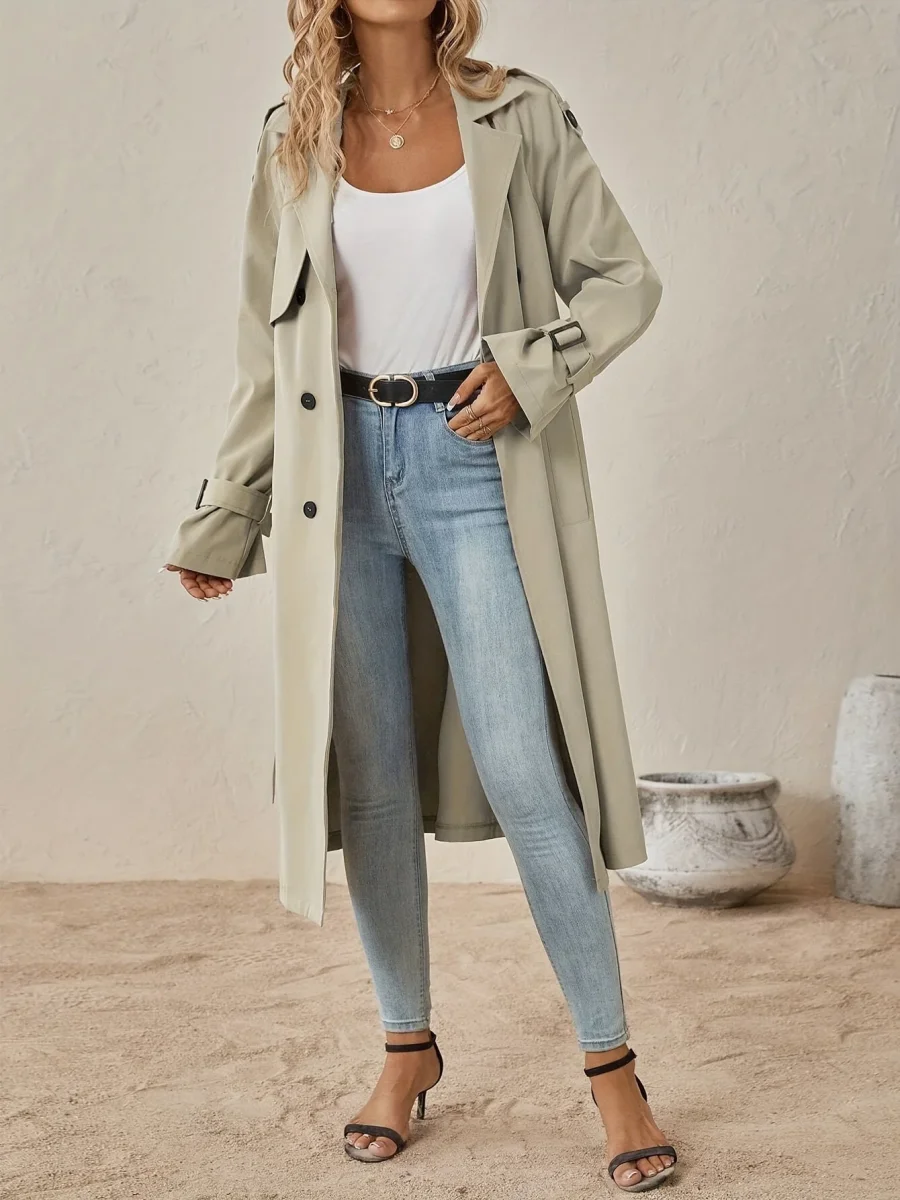 Femme Manteau Trench Long Luxe Élégant – Manteau Double Boutonnage