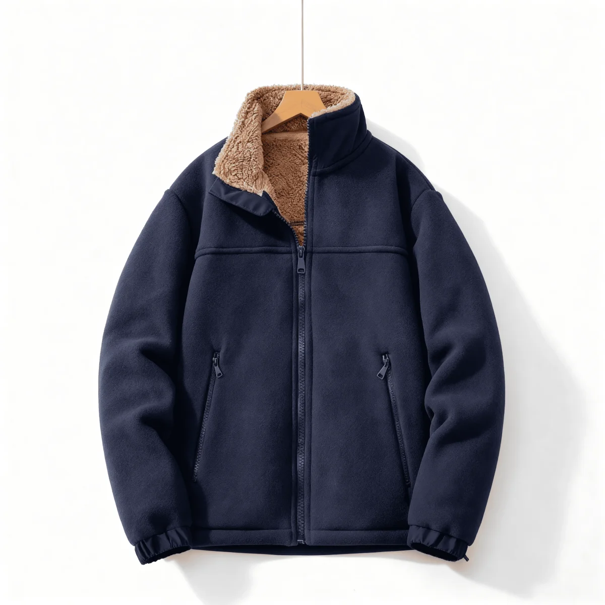 Veste doublée en polaire pour hommes – Veste épaisse à col montant avec fermeture éclair
