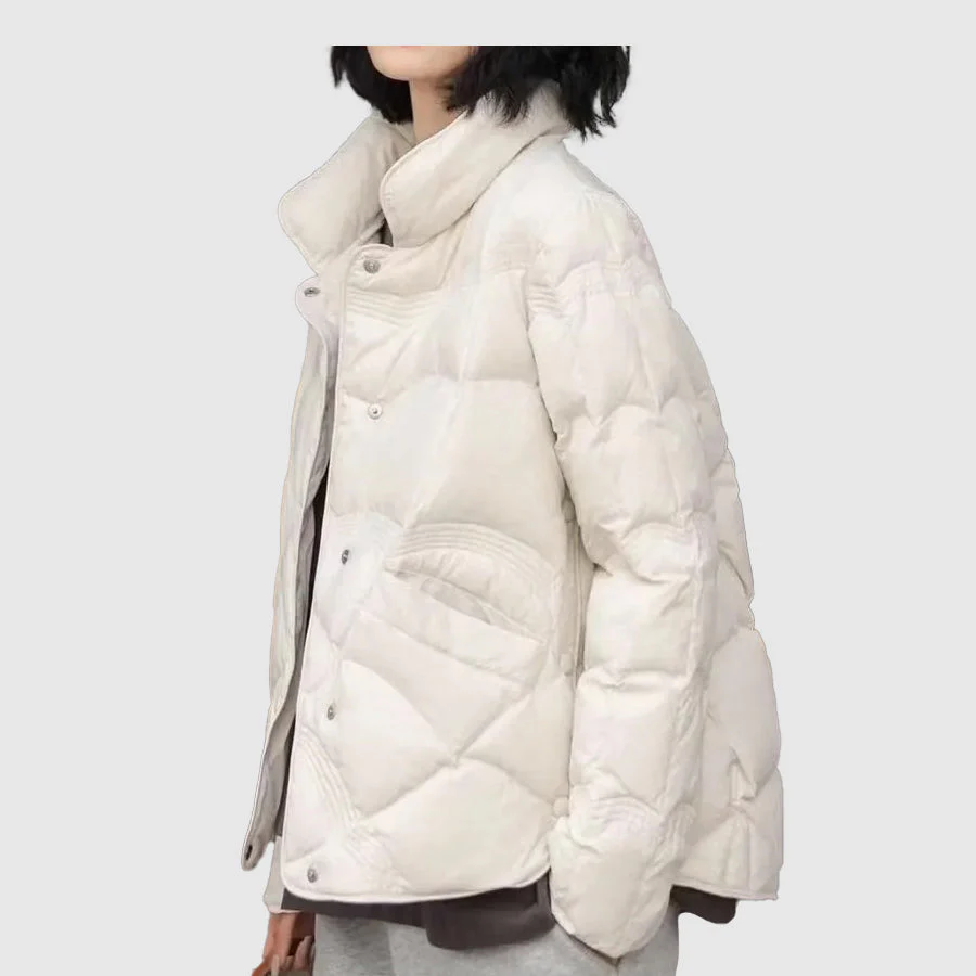 Restez au chaud et élégante cet hiver avec la veste matelassée à pression pour femme, conçue pour offrir confort et sophistication. Fabriquée en tissu matelassé isolant, elle assure une chaleur fiable sans encombrement. La fermeture à pression permet un enfilage facile et un look contemporain, tandis que le col montant apporte une touche moderne au classique des vêtements d’hiver. Parfaite pour un usage quotidien, les activités en extérieur ou les sorties décontractées, cette veste se marie facilement avec des jeans, leggings ou pantalons. Légère mais protectrice, elle est un essentiel pour toute garde-robe hivernale.