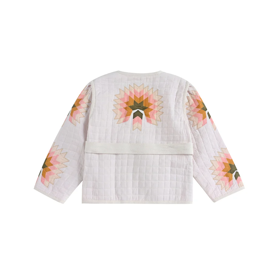 Sublime dans son patchwork fleuri aux couleurs pétillantes, la veste Ombeline respire la joie de vivre. Cette veste matelassée solaire suffit à rendre une tenue simple exceptionnellement ravissante !