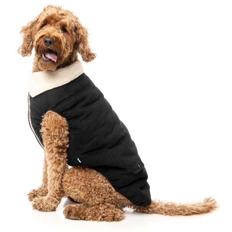 Indémodable, le manteau pour chien « Frontier« en noir de la marque Fuzzyard se distingue par son mélange de matière. Une veste pour chien chaude grâce à son intérieur sherpa mais surtout au design intemporel !