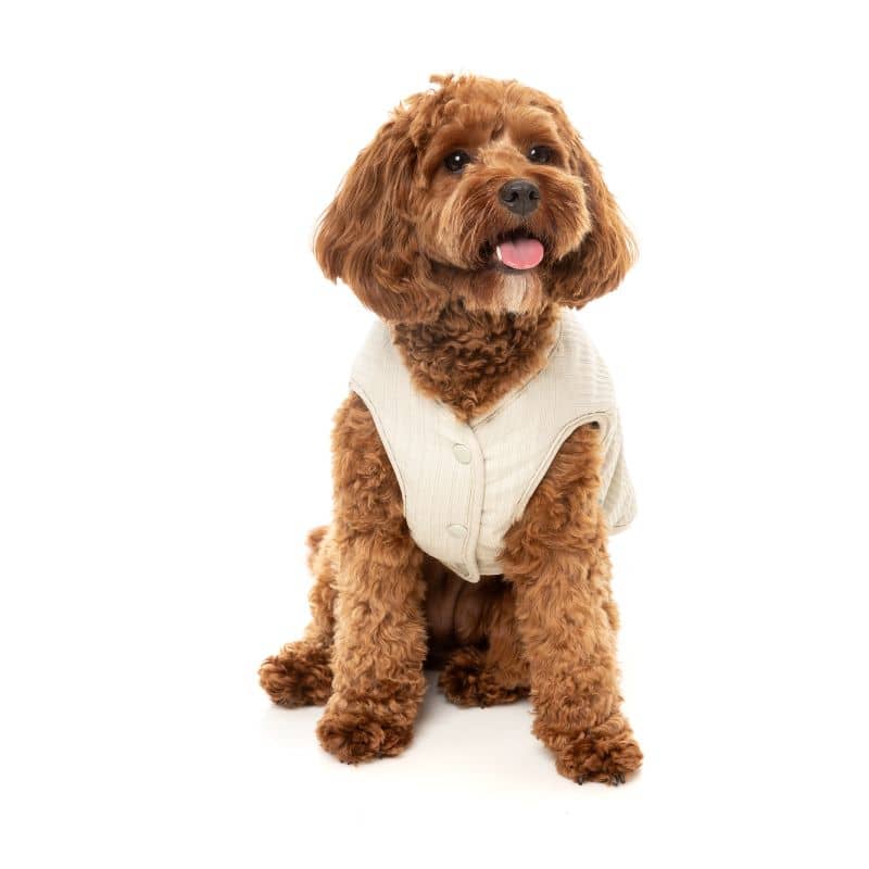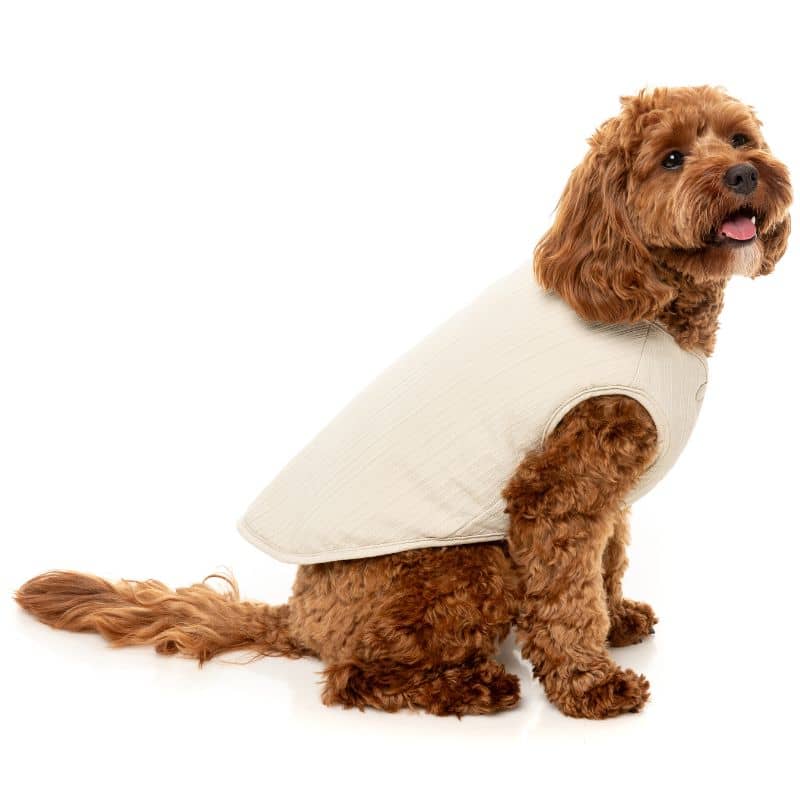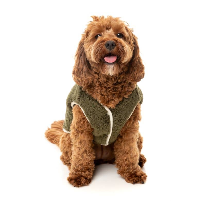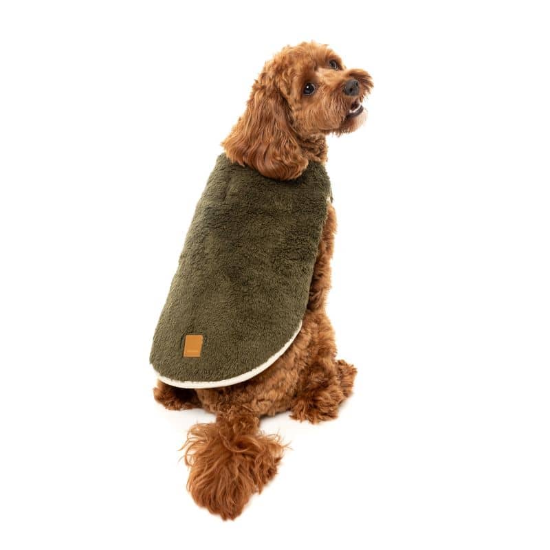 Légère mais chaude, la veste pour chien réversible « Umeda » en beige et polaire kaki de la marque Fuzzyard va vite devenir l’indispensable de la garde robe de votre poilu pour cet hiver ! Hyper tendance, elle est 2 en 1 avec un côté tissu côtelé beige et un autre côté tissu polaire en kaki.