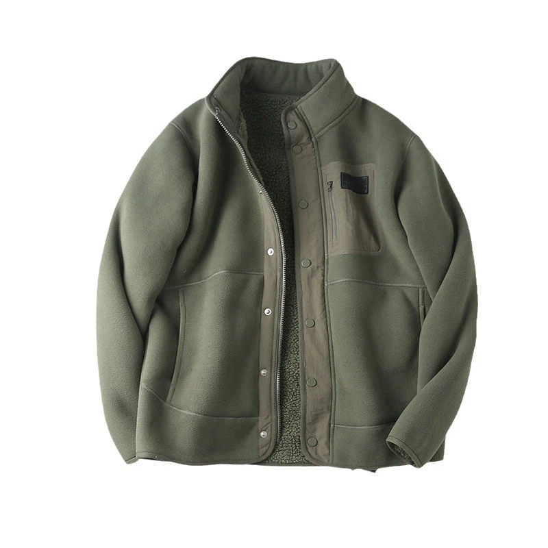 Veste doublée en polaire pour hommes – Veste épaisse à col montant avec fermeture éclair