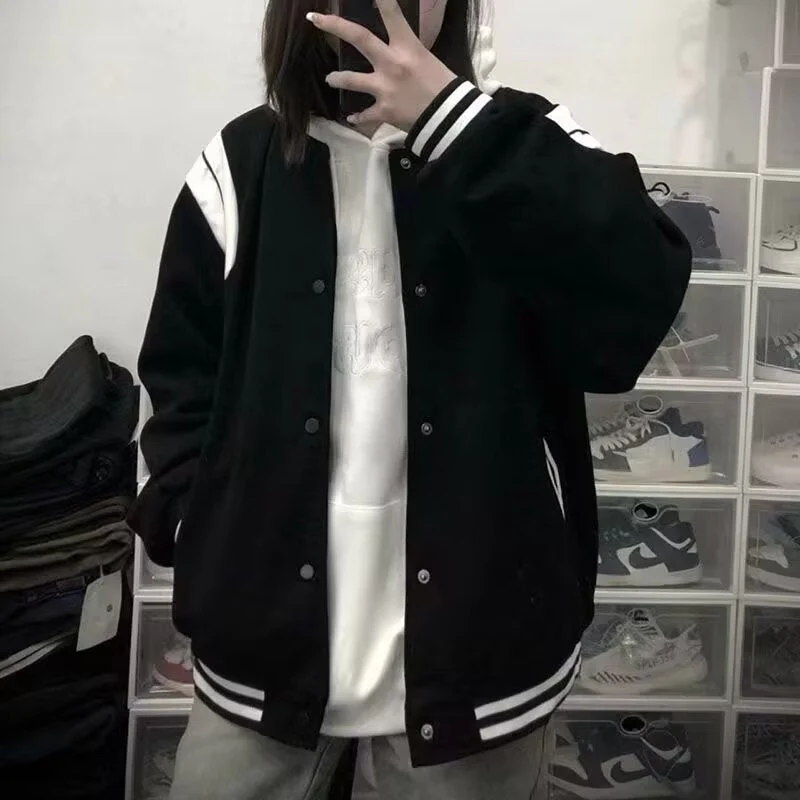 - Détails à Rayures sur les Manches: Les rayures contrastantes apportent une touche sportive et visuellement attractive. Elles renforcent le style universitaire rétro. Ce détail fait de la veste une pièce maîtresse de toute tenue.