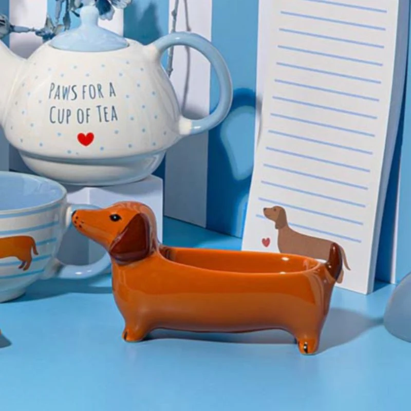 L’indispensable pour tous les amoureux des chiens : le vide poche en céramique en forme de chien teckel de Sass & Belle.